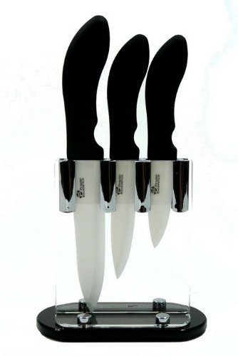 Bloc plexi, 3 couteaux, lame céramique blanche : lame de 7,5 cm lame de 10 cm lame de 12,5 cm Manche soft touch noir