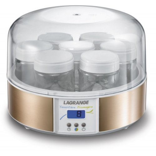 Yaourtière formagère LAGRANGE complète. Ecran électronique avec rétro-éclairage. Signal sonore de fin de préparation. Corps en thermoplastique avec bandeau en aluminium anodisé. Feutre effaçable. Faisselles et couvercles en polypropylène. Puissance : 17 W. Le plastique ne contiennent pas de phtalates ni de bisphénol A.
