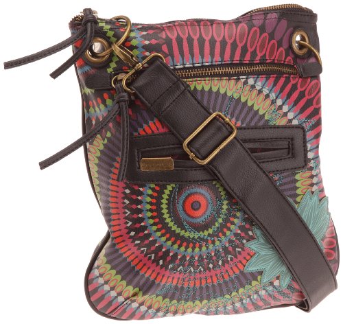 Sac en toile nylon imprimé floral dans les tons de rouge et garniture cuir synthétique marron.On adore ce sac hyper pratique que l'on porte à l'épaule avec ses deux anses ou croisé avec sa bandoulière.- fermeture à zip- 1 poche à rabat et loquet sur le devant- 1 poche à zip de chaque côté- 1 poche zip au dos- 1 poche à fermeture éclair intérieure- 2 petites poches intérieures dont 1 pour mobile- 4 clous de protection sous le sacUn must Have !