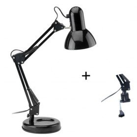Lampe de bureau articulée Techno MATHIAS LUMINAIRES en métal. Hauteur : 48 cm. Coloris : noir. Puissance maximum : 25 W. Ampoule E27 (ampoule non fournie).