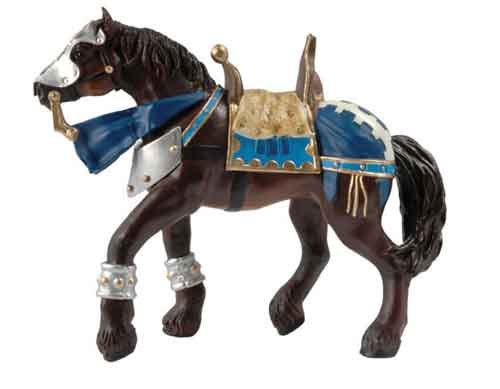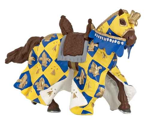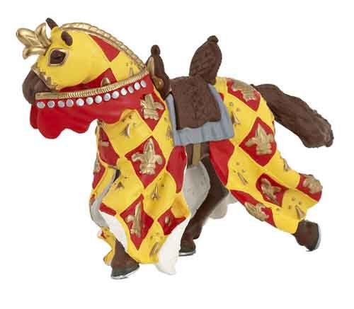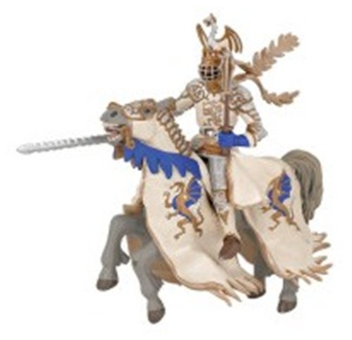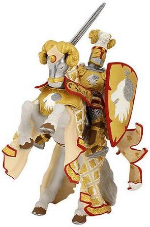 Magnifique figurine peinte à la main d'un Chevalier et son cheval en édition limitée. Le Maître des Armes en version Or comblera les garçons avec son cheval drapé, son bouclier et son epée.