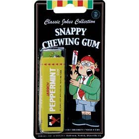 Le chewing -gum à pièger vos amis!! Ceci ressemble à un paquet de chewing-gum normale, mais quand votre victime essaye de tirer un morceau, une petite languette a ressort piege leurs doigt. Effrayant mais inoffensif.