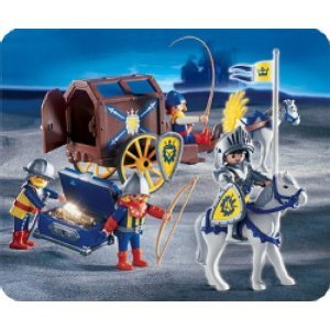 Ce coffret Playmobil plonge les enfants dans l'univers épique des chevaliers du Moyen-Age. Cette boîte contient une charrette, 4 personnages équipés (1 chevalier revêtu d'une armure de plates et équipé d'un bouclier et d'une épée 2 fantassins, 1 archer et 1 épéiste 1 convoyeur, armé d'un fouet), 2 chevaux et de nombreux accessoires (coffre, pièces en plaqué or, drapeau, boucliers, hallebarde, lance, écu, paire de menottes...). Un coffret de jeu idéal pour s'immerger dans le moyen-âge épique des chevaliers !