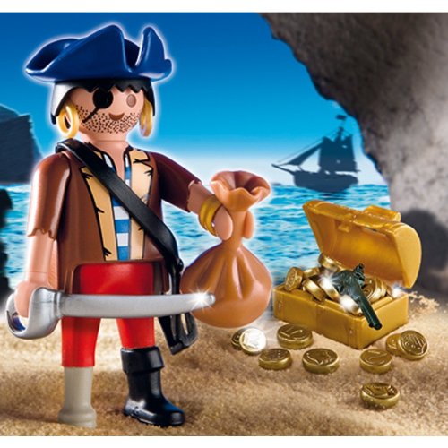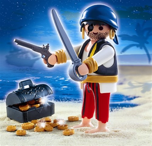 AAAR! Cette Playmobil ® spécial Pirate est en mission! Pour pillage de tous les navires dans la mer pour leur or, de trésors et de richesses. Mais les autorités sont à leurs trousses. Si vous vous trouvez, ce pirate sera certainement puni. Comprend un Playmobil ® figure jetables, une épée, un fusil et d'une boussole. À partir de 4 ans et plus