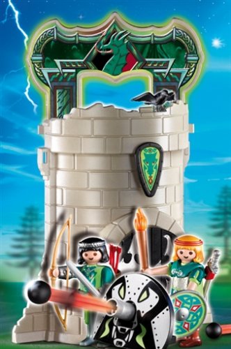La tour des chevaliers des Dragons Verts 4775 de PLAYMOBIL permet à votre enfant de plonger dans l'univers du Moyen Age. Cet ensemble comprend 2 personnages de chevaliers, une tour, un canon et des armes. Ingénieux, le canon tire des projectiles. Et la tour est transportable.
