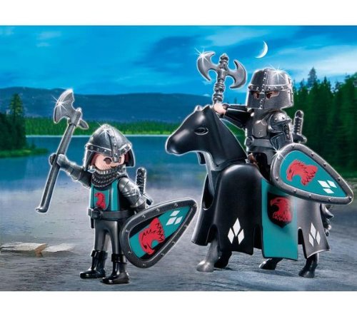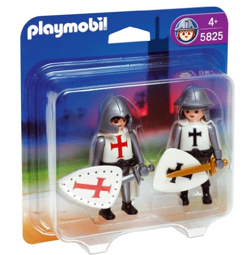 Le set 5825 - Duo Croisé et templier signé PLAYMOBIL se compose de 2 chevaliers équipés de boucliers et d'épées.