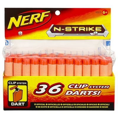 Fléchettes en mousse NERF N-Strike Clip System. Contenu : 36 fléchettes. Ces fléchettes sont compatibles avec les modèles N-Strike Recon CS-6, N-Strike Raider Rapidfire CS-35 et N-Strike Deploy CS-6. Pour les enfants de plus de 6 ans.