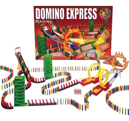 Goliath Domino Express Racing. Ein Spiel voller Spannung und Geschicklichkeit. Bei diesem Spiel sind der Phantasie beim Aufbauen keine Grenzen gesetzt. Auch in diesem Jahr wird es wieder einen spannenden Domino Day auf RTL zu sehen geben. Der Domino Day 2008 findet am 14. November 2008 statt. Das Motto lautet dieses Jahr '10 Jahre Domino Day - Breche den Weltrekord. Für 1 bis 8 Spieler ab 8 Jahren.