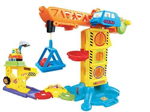 Une grue géante pour construire des kilomètres d'histoires. Un univers complet pour s'amuser à construire grâce aux Tut Tut Bolides ! - Un véhicule électronique inclus « Marcel, le roi de la pelle » avec un bras articulé à manipuler - Il déclenche des phrases et des sons amusants lorsqu'il passe au-dessus des 5 zones magiques - 3 chansons et 6 mélodies entraînantes - Une super grue avec monte-charge pour déplacer les marchandises ou les véhicules. La grue est orientable et dispose d'un treuil à manivelle avec plateforme pour transporter un véhicule ou des objets - Un trieur de forme dans le corps de la grue pour classer les 3 blocs-formes colorés inclus - De nombreux éléments à manipuler : 1 ascenseur, des engrenages, 1 zone de chargement et de déchargement, 1 grande tour avec des rampes inclinées pour s'amuser à faire rouler les blocs... - 5 zones magiques 2 piles LR03 incluses pour le véhicule.