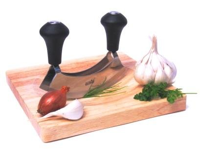 Hachoir berceuse double lames + planche en bois. Pour hacher vos herbes aromatiques, pas la peine de vous encombrer d'un hachoir électrique ou de posséder la technique des grands professionnels de la cuisine. Ce hachoir à berceuse double lame est livre avec sa planche ...
