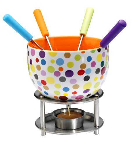Idéal pour partager entre amis un dessert original et gourmand. Le set contient:un bol, un support en acier, une bougie chauffe-plat et 4 fourchettes.Le set à fondue "Vagues" et le set à fondue "Pois" sont vendus séparemment. Marque: Mastrad. ...