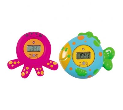 Ce thermomètre digital indique la température exacte de l'eau du bain et de l'air ambiant. Placez le thermomètre dans l'eau, en vous assurant que l'arrière du thermomètre est bien submergé. Allumez le thermomètre. Lorsque la température de l'eau se trouve entre 32°C et 38°C (90°F et 100°F), une diode verte s'allume.