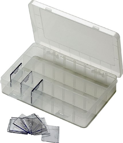 Boîte de rangement transparente 20 x 13,6 x 3,8 cm à compartiments amovibles. Idéale pour le rangement de nombreux accessoires et produits (perles, accessoires de pêche,....). Fabrication française.