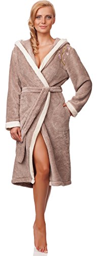 Peignoir pour Femme avec une qualité velours. Le tissu seche extremement rapidement, qu'il soit mouillé ou simplement humide. Muni d'une ceinture et de deux grandes poches extérieures. Un "must have" indispensable. Incomparable, tres souple et ultra doux pour une sensation de bien-etre garantie. La matiere Doux a poils longs de cette robe de chambre est si douce et confortable qu'en comparaison le cachemire vous semblera etre de l'acier. Maintient une température corporelle agréable et empeche les sensations de surchauffe. Composition matiere: 100% Polyester