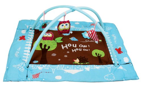 Modèle Chouette - Tapis d'activités avec arches de jeux - Dès la naissance - 3 hochets amovibles sur l'arche - Garçon & fille - Dimensions : 107 x 87 cm x 60 cm - Livréà l'unité