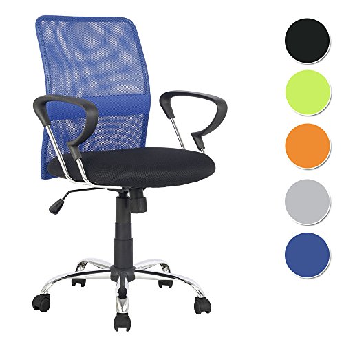 SixBros. Chaise de bureau pivotante bleu/noir H-8078F-2/2117 Couleur: bleu/noir Réglage en hauteur continu Siege et dossier en cuir synthétique et enlacement de nylon Mécanisme à bascule en fonction du poids Siège et dossier ergonomique très confortables Pied en étoile 5 branches équippés de roulettes stables Les accoudoirs consistent en plastique rigide Siège pivotable par 360 degrés Poids maxi de l'utilisateur: env. 120 kg Montage simpleDimensions approximées (en cm): Hauteur totale: 115-125 Hauteur du siège: 63,5x45 Siège: 50x50 Dossier: 85x46